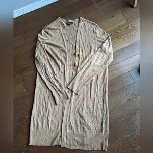 Lord & Taylor Tan Extrafine Marino Wool Cardigan Womens Sz S Long Winter Layer