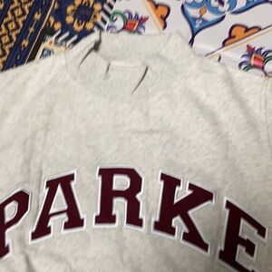 Parke Heather Grey Mock Neck Sweatershirt with Maroon Varsity logo size L / XL