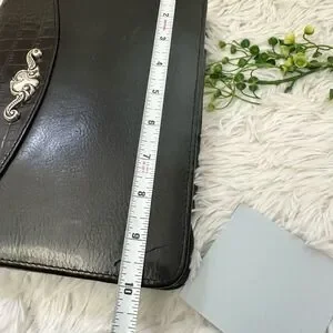Brighton Black Leather Binder with Croc Emboss and Silver Decorative Clasp
