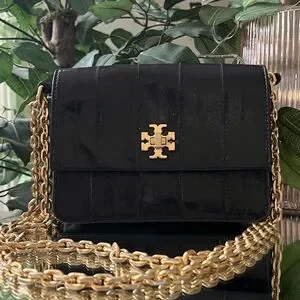 EUC Tory Burch Black Mini Crossbody Bag with Gold Chain