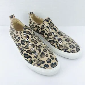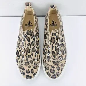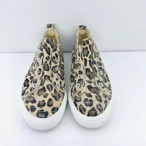 Corkys Womens SZ 8 Babalu Animal Print Slip On Canvas Sneakers Shoes Laceless