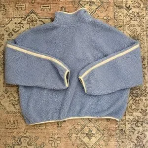 Embrace warmth with this soft teddy jacket. Features a cozy texture and relaxed fit. Ideal for casual wear. Size L worn twice.