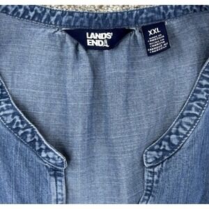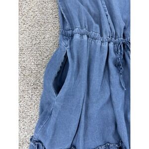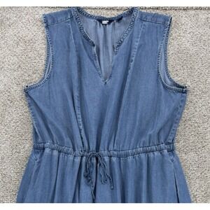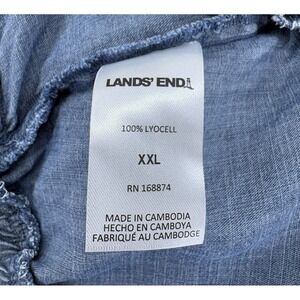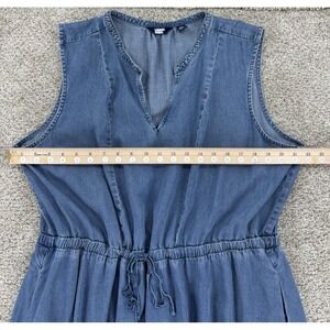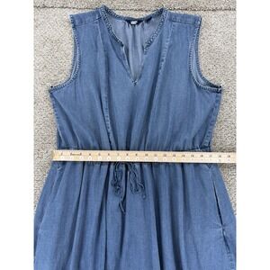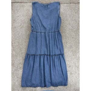 Lands End Lyocell Tiered Midi Dress Size XXL Blue Elastic Tie Waist Seam Pockets