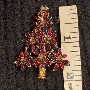 Christmas Poinsettia Tree Pin Brooch LIA Enamel