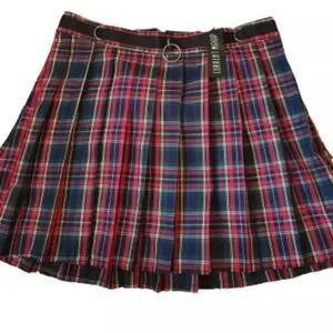 Dolls kill Current Mood Red and Blue Plaid A-Linepleated, small new with tags