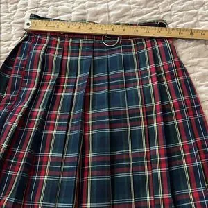 Pleated plaid skirt with raw hem