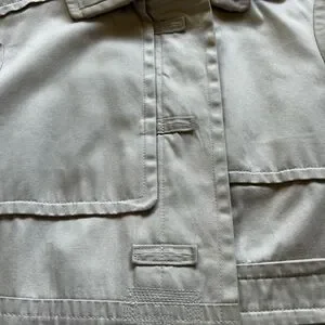 This vintage 90S YSL Yves Saint Laurent trench coat is made from a durable cotton blend in khaki color, perfect for all seasons. The classic A-line style features a button closure and long sleeves, with a lined iconic 90S timeless design, this coat is a versatile piece that can be worn for various occasions, adding a touch of retro sophistication to any outfit. Made in France this long trench coat in size US 16,