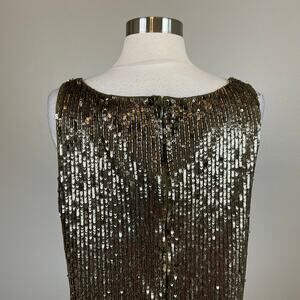Ralph Lauren Sequined Sleeveless Mini Shift Cocktail Dress Bronzed Green Size 12