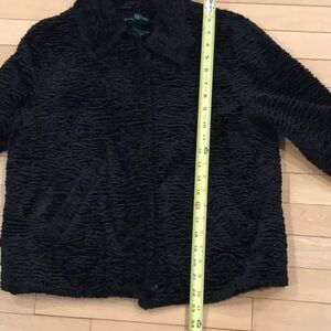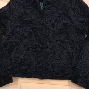 This beautiful Ralph Lauren jacket is faux lamb type of fabric. Vegan friendly. Snap up front with 2 slash pockets. Size Large. Measures 19-20 inches across the chest, waist is 20 inches, shoulder to hem line is 22-23 inches. Excellent condition. No rips tears or stains. Ready to wear over a great pair of jeans. You’ll look fabulous and be the envy of everyone.