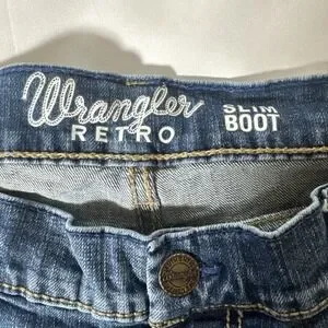 Wrangler Retro Jeans Mens 38 x 30 Blue Slim Boot Cut Denim Western Cowboy Rock