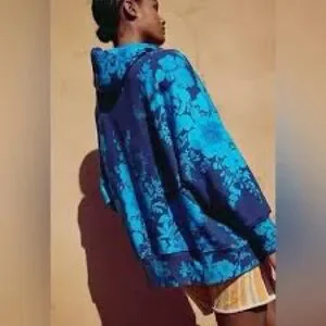 FP Movement Sprint To The Finish Printed Hoodie in Blue Floral, size Medium, NWT