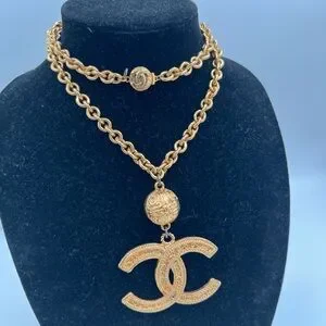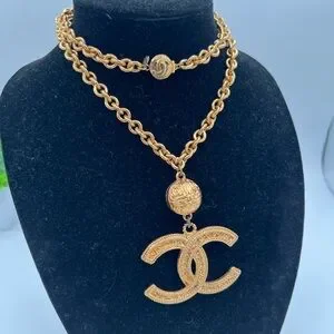 Chanel 24k gold plated vintage large CC logo necklace ❤️