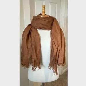 Fog Linen Work Light Brown/Tan 100% Linen Scarf