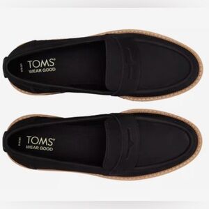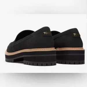 TOMS Cara Penny Loafer Lug Sole Black Leather Platform Slip On Comfy Women’s 10