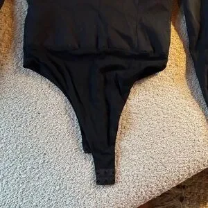 Elegant black bodysuit with button details. Perfect for stylish outings.