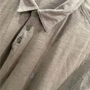 John Varvatos USA Brown Slub Cotton Polo Shirt Peace Sign Logo Size L