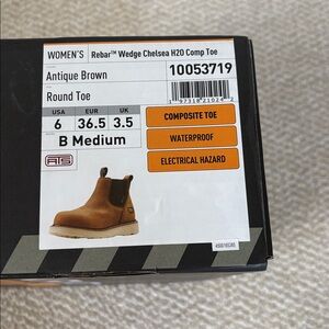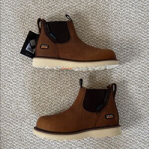 NWT in Box Ariat Brown Leather Rebar Wedge Chelsea Waterproof Composite Toe Work Boot Wmns Size 6