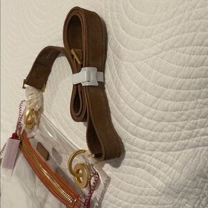 Brown leather adjustable strap and trim