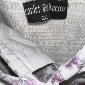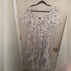 Beautiful Scarlet Darkness floral dress in size 2XL. Features a flattering square neckline with a tie detail, puff sleeves, smocked back for stretch and comfort, and a flowy skirt with ruffle hem.