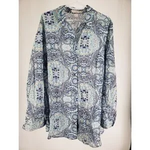 Coldwater Creek Women's Non-Iron Paisley Button Front Long Sleeve Blouse Sz XL