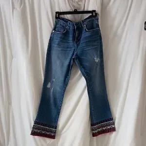 Pilcro And The Letterpress By Anthropologie Flare Jeans with Embroidered Red Hem