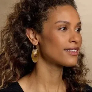Rows of multicolored garnet and quartz fill these basket-like hoops of brushed brass. Self-locking wires. Handcrafted. 2-1/4" long. New with tags from Sundance.