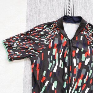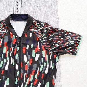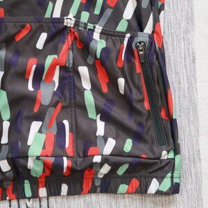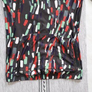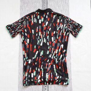 Velocio ES cycling jersey in a women's medium. This has a race fit, full length zip, three back pockets, and back zippered stash pocket. There's a pin size hole on the left sleeve, but otherwise this is clean and in excellent preowned condition.