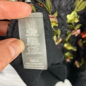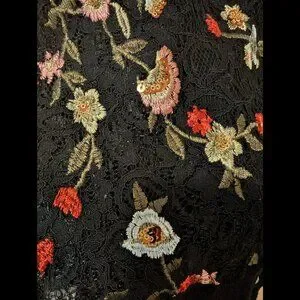 This is such a gorgeous and romantic cardigan. The intricate floral embroidery features pink, coral, light silvery blue, and green flowers with gold sequins set against a black lace background--simply stunning! Finished with luxe pearl-like buttons and a classic round neckline. I am only reposhing because I need a smaller size.