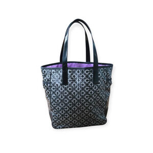 tags- coach, coachbag, coachtote, coachwaverly, waverlytote, opart, opartprint, vintagecoach, vintagecoachbag, rarecoach, rarecoachbag, coatedcanvas, coatedcanvastote, blackgreychalk, blackandgreybag, silverhardware, leathertrim, patentleatherstraps, turnlockpockets, turnlockclosure, satinlining, lavenderlining, largezipperpocket, slip pockets, everydaytote, worktote, shoulderbag, largecoachbag, classiccoach, y2kbag, 2000scoach, collectorscoach, excellentcondition, preloveddesigner, designerbag, authenticcoach