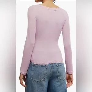 Achieve effortless style in this comfy cardi from Intimately, featured in a soft ribbed fabrication with lacy trim and dainty button closure. **Fit:** Form-fitting, semi-cropped **Features:** Soft ribbed fabrication, V-neckline, button-front closure, lace trim, rounded hem