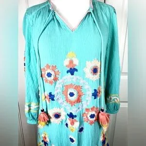 Soft Surroundings Artisan Embroidered Boho Tunic Artsy Dress Tassel Resort S