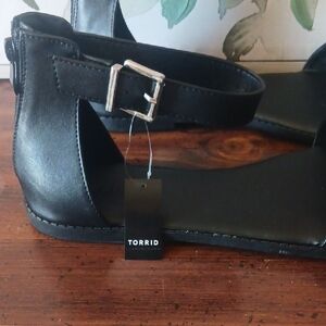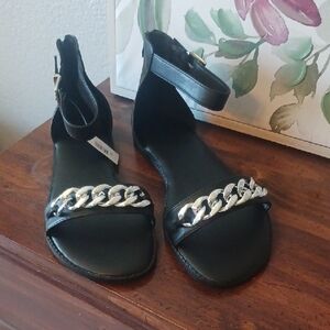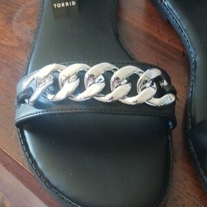 Torrid Black Ankle-Strap Sandals with Silver Chain