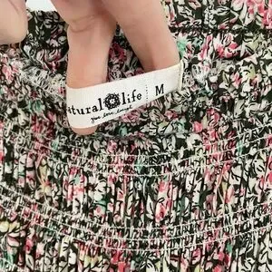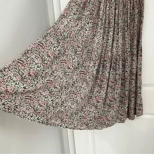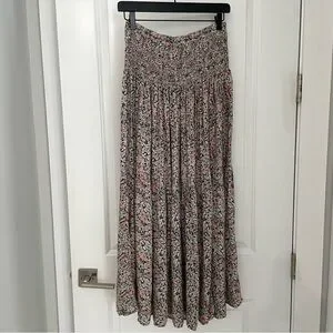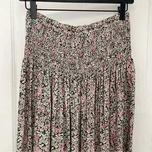 NATURAL LIFE Pink and Green Floral Maxi Skirt Smocked Waist Flowy Boho Hippie. 1