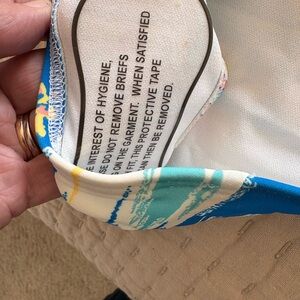 Brand new, never worn, tags and sanitary liner intact. Size US 10, done in a fun pattern called Paradise Bay, multicolor
