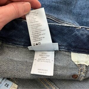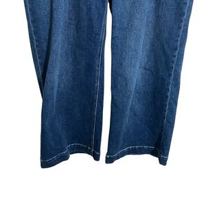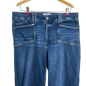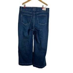PAIGE Anessa Cropped Wide Leg Jean in Amoroso Dark Wash. Set-in pockets bring a fresh look to slightly stretchy jeans that fit slim through the waist and thighs and relax into ankle-grazing wide legs. The PAIGE Vintage stretch denim offers an authentic vintage look and a broken-in feel from the very first wear. Zip fly with button closure. Five-pocket style.