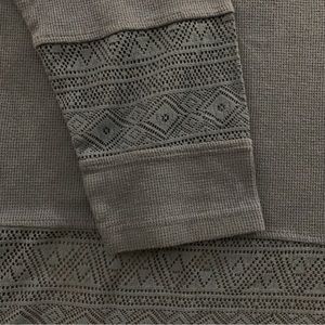 This NorthCrest top has such fun details. The neck is adjustable with drawstrings. The bottom and the bottom of the sleeves have a fun lace like detail.