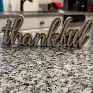 Thankful Wooden Tabletop Sign - Neutral Brown and White