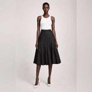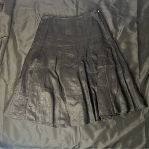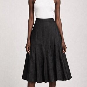 Ralph Lauren linen skirt in solid black. Flows with a full, flared silhouette. Subtle paneling adds movement. Versatile piece for many outfits.