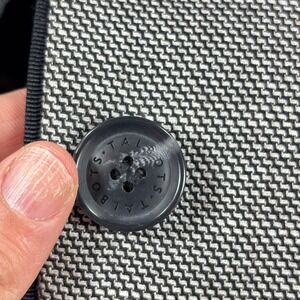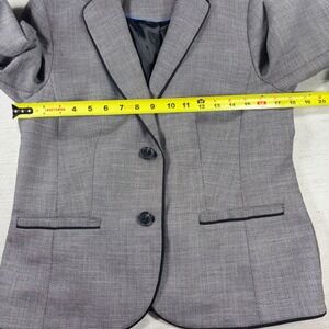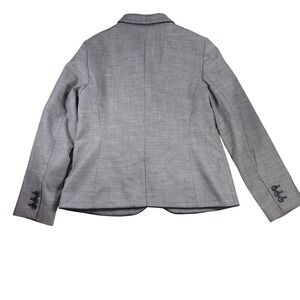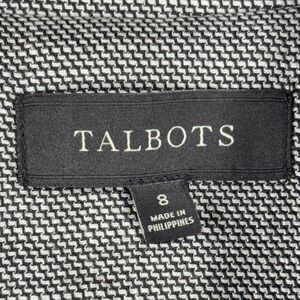 Keywords: Talbots blazer, gray blazer, black trim jacket, houndstooth blazer, career jacket, professional blazer, womens blazer size 8, business casual blazer, tailored blazer, classic blazer, black and gray blazer, two button blazer, lined blazer