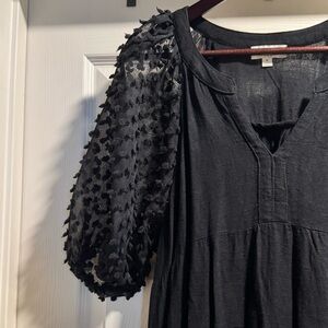 EUC Umgee Tiered Black Mini Dress with Textured Sleeves Size Medium