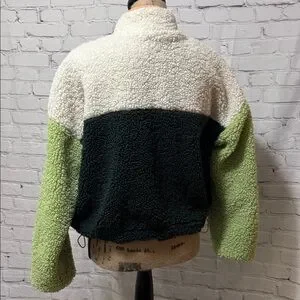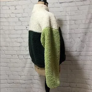 Wild Fable oversized cropped Colorblock Sherpa Jacket with Zipper & pockets