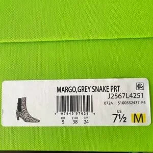 Brand new in box Sam Edelman “Margo” ankle boots in a chic grey snake print. Never worn and in pristine condition. These are a stylish Chelsea boot silhouette with stretchy side panels for easy on/off and a comfortable low stacked heel — perfect for everyday wear or dressing up fall and winter looks.