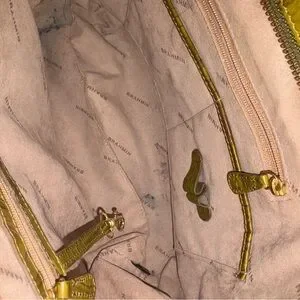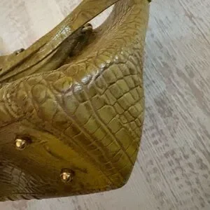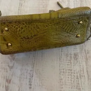 Great used condition Brahmin handbag. The outside is in very good condition. Has handles and can use as shoulder straps. I did see some ink stains inside i pulled the lining out the bad ink stain is way in the corner inside of bag. See all pictures. Clean smoke free home. Will take offers for sure. Just ink spots inside no food stain such as that several ink spots.