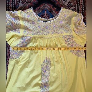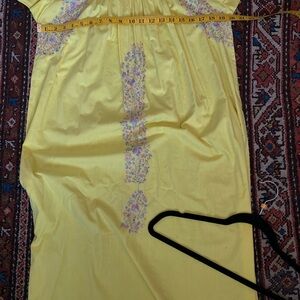 Vintage Oaxaca Dress Embroidered Pastel Maxi Kaftan Butter Yellow Full Length Long
