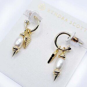 Kendra Scott Demi Gold Huggie Earrings in White Baroque Pearl NWOT