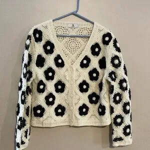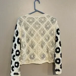 Floral Crochet Cardigan Sweater - Black and Cream