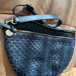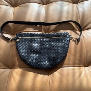 Clare V Midnight Blue Woven Leather Grande Fanny
