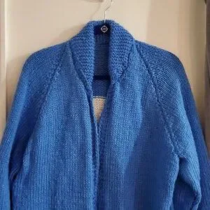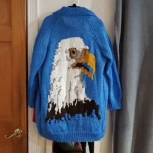 Hand Knit Bulky Cardigan Sweater Eagle Sweater Royal Blue XL