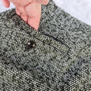 A stylish olive green herringbone tweed wool blend mini skirt with a flattering A-line silhouette from Madewell. Features front buttons and a textured finish for versatile, everyday wear. Pairs easily with neutral tops for a polished look. Collegiate Fully lined, great condition. Size 8