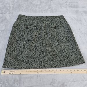 Madewell Green Herringbone Tweed Button Front Wool Blend Lined Mini Skirt Size 8